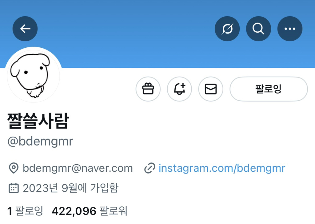 '짤쓸사람‘이라는 한국 트위터 유저가 제작한 캐릭터로, 귀여운척하지만 사실은 멘헤라견이라는 컨셉으로 트위터에서 아주 유명함ㅋㅋㅋ