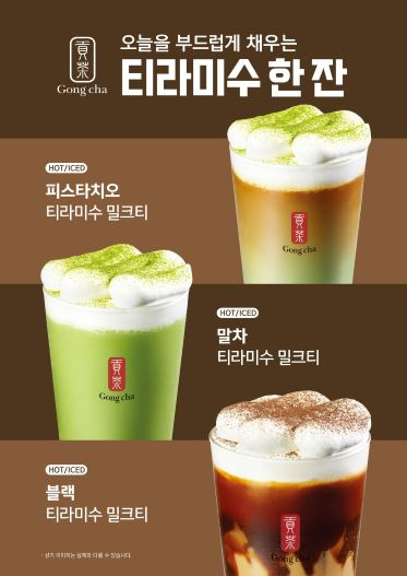 공차코리아(Gong cha Korea)는 티라미수의 부드럽고 달콤한 매력을 재해석한 신제품 ‘티라미수 밀크티’ 시리즈 3종을 출시한다고 4일 밝혔다.