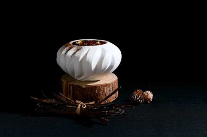 훈연 바닐라를 저온에서 천천히 조리해 캐러멜라이즈된 향을 살린 케이크