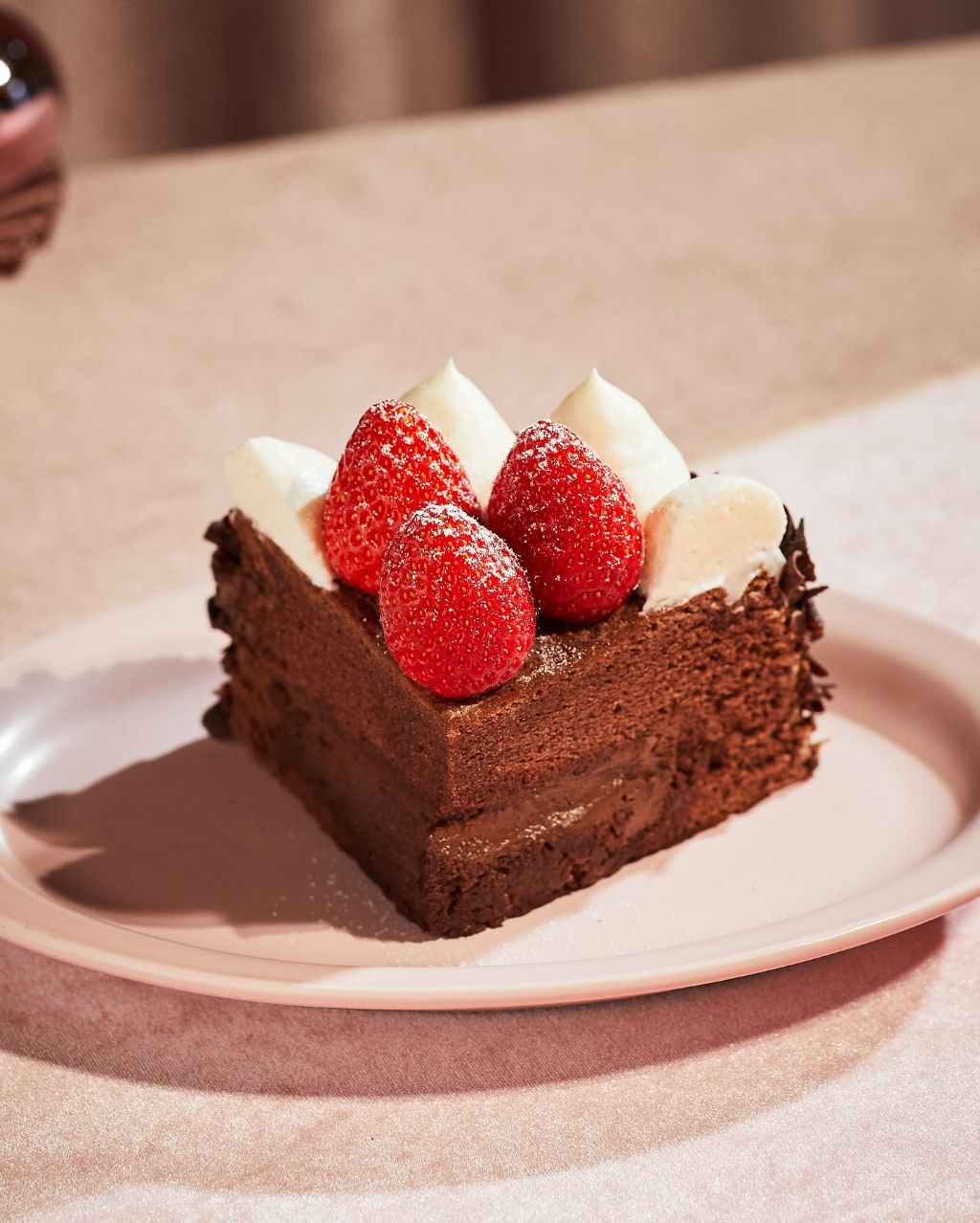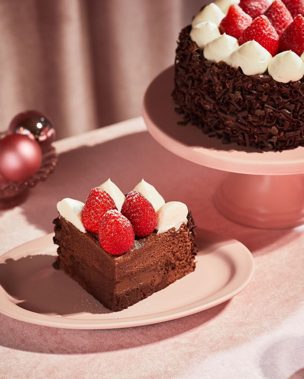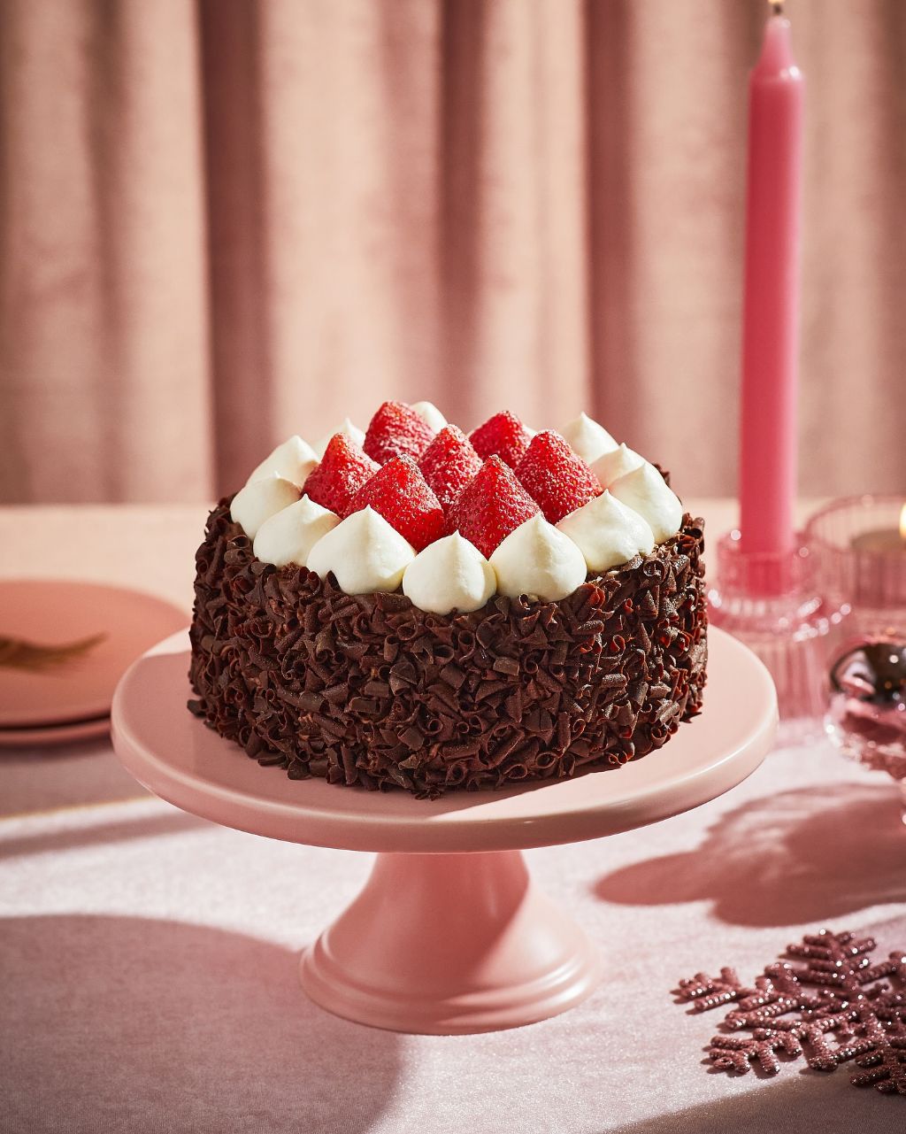 신선한 생딸기를 가득 얹은 달콤한 초콜릿 케이크로,