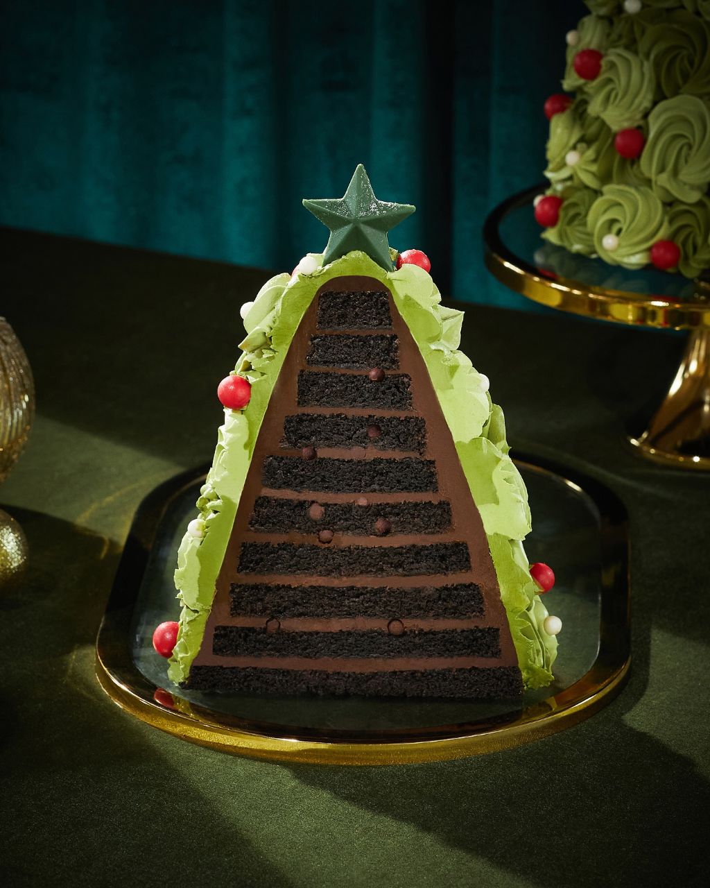 진한 초콜릿 풍미가 매력적인 트리 모양의 케이크로