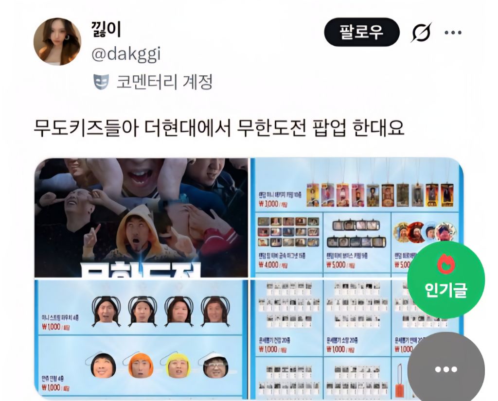 = 수익금 전액 기부임 이번 무도팝업은 기부 목적이 아니기에 없다