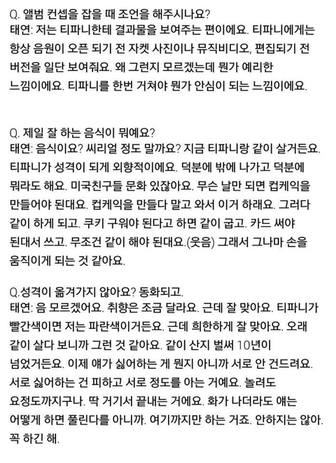 티파니: 진짜 약간...태연이가 먼저 SNS 시작했었을 때 (제가 태연이) 사진을 되게 많이 찍어줬었을 때, (제가 말하길