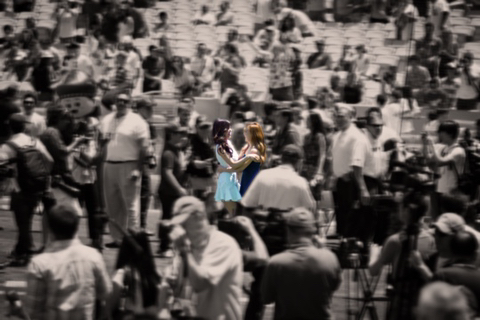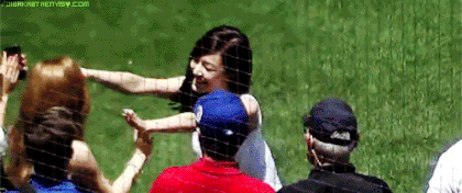 관중들 엄청 많은 경기장에서도 둘만의 세상....