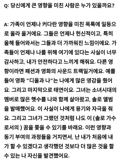 태연: 그냥..제목 그대로 일상을 담은 것 자체가 너무 저한테는 감사했고 소중했고, 제 그런 (지금 활동하는) 모습을 언제 남겨보겠어요.