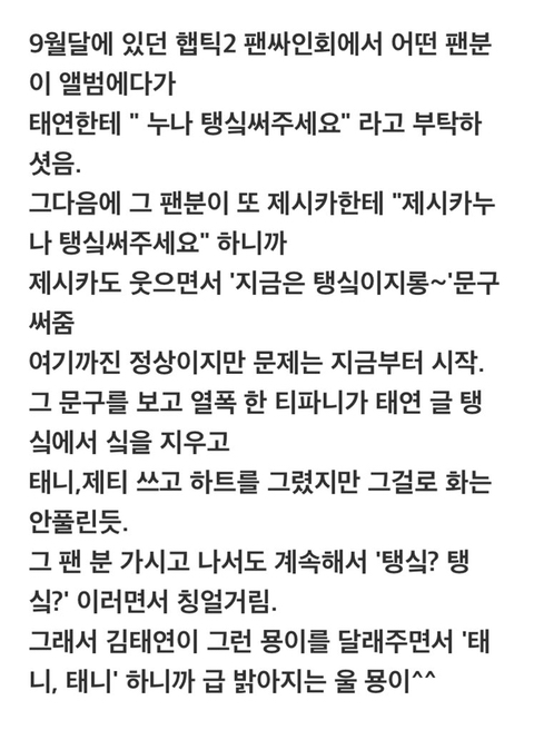 티파니: 태연이가 문자할 때 나 예쁜이라고 불러요^0^