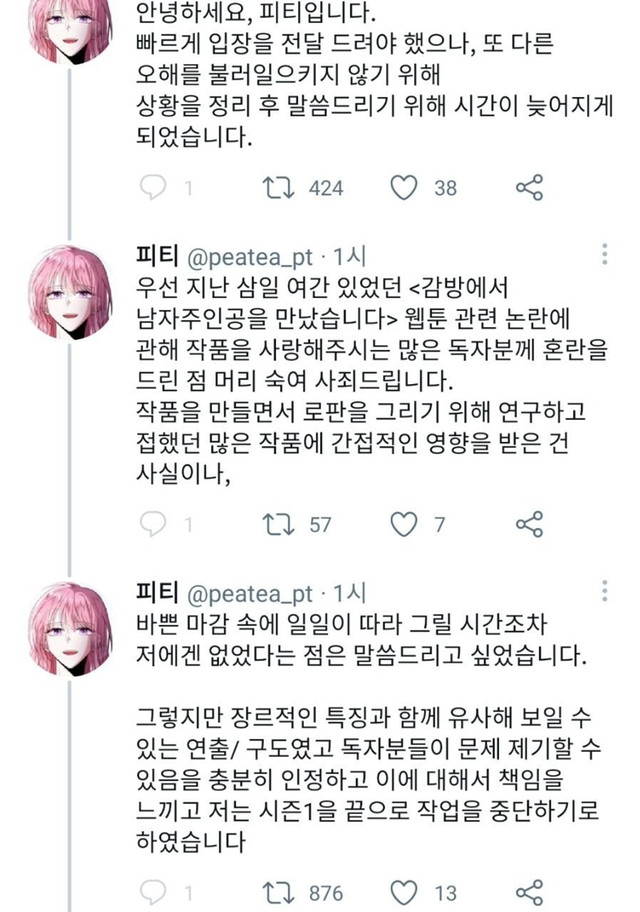 <감방에서 남자주인공을 만났다> 원작 소설 작가님 (웹툰 각색도 맡으심) 입장문