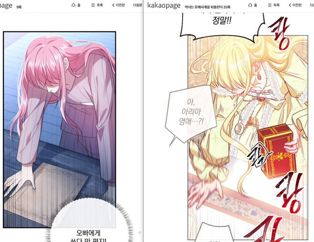 왼쪽 : 감방에서 남주 / 오른쪽 : 악녀는 모래시계