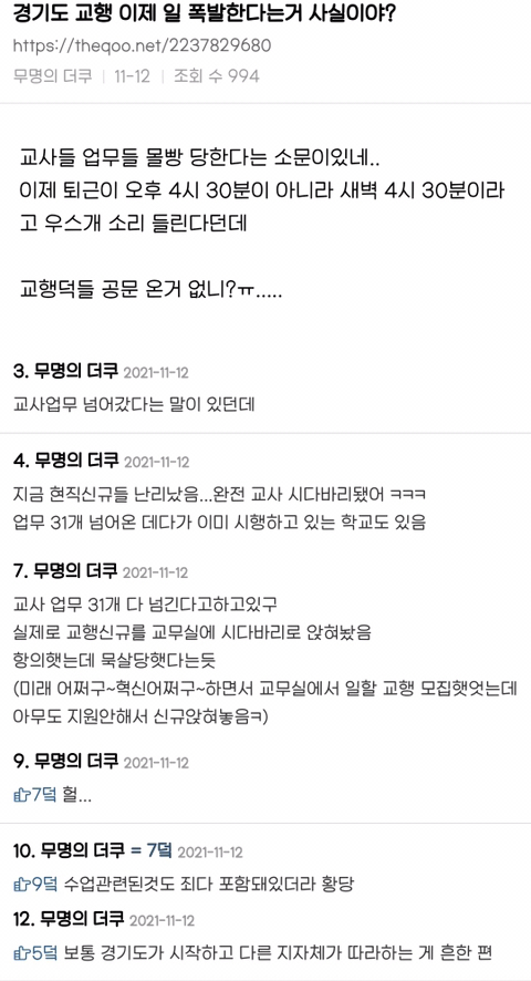 여기서 교사들이 태클 거는 부분이 “소방훈련은 내가 하는데? cctv 관리는 내가 하는데?” 이런식으로 얘기를 하니까 또 댓글이 길어짐