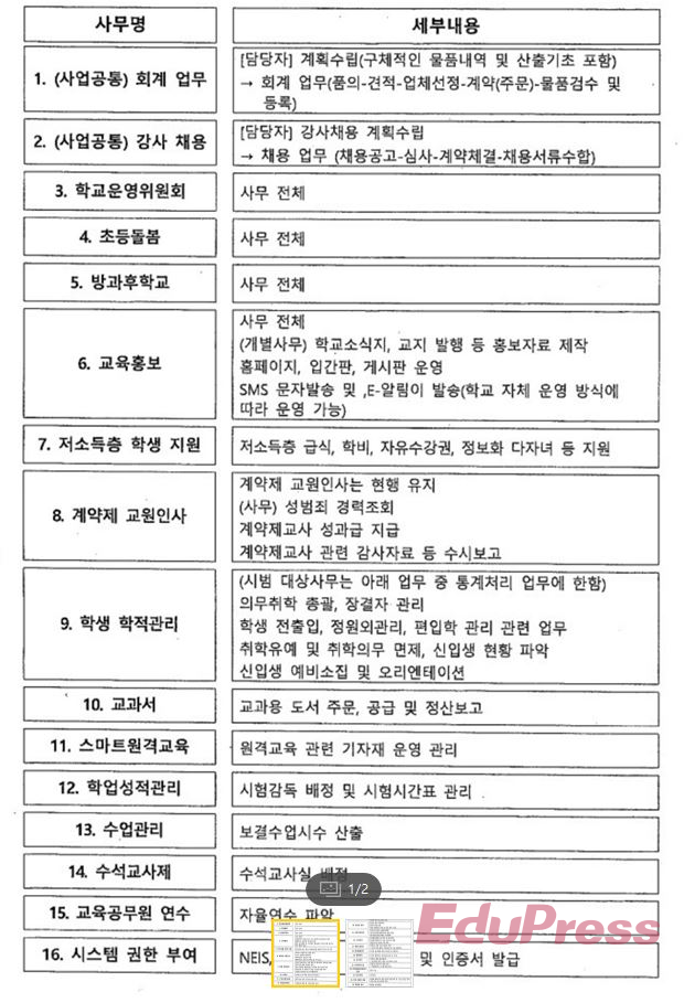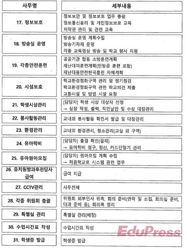 (원래 교사가 다 해야하는 업무이거나, 행정실이 대부분 떠맡아서 하고 있는 경우도 있었음)