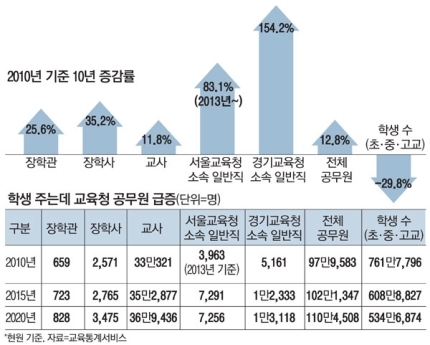 5) 교육행정직(일반직)공무원들을 더 뽑으면 해결되는 문제인가