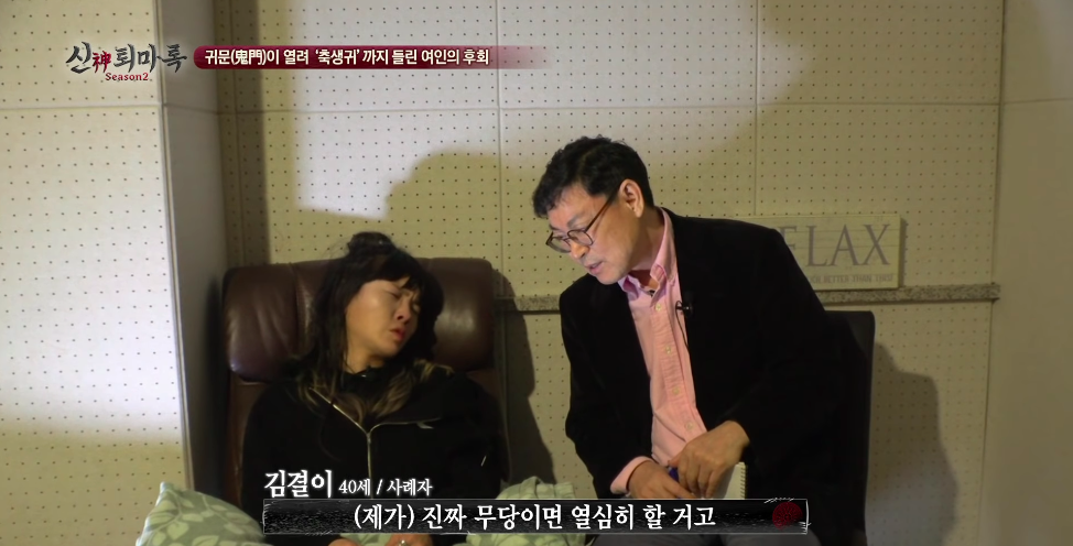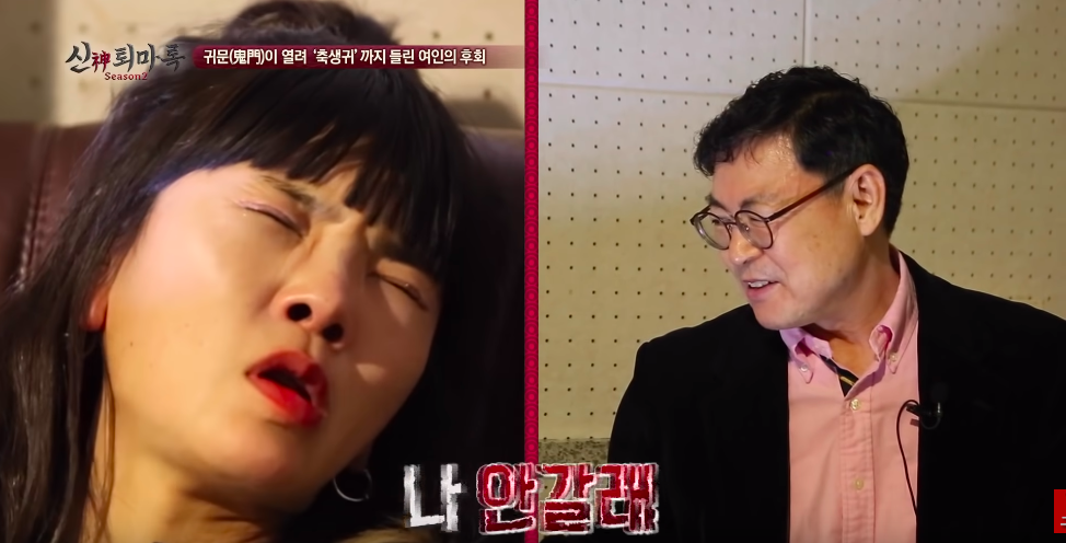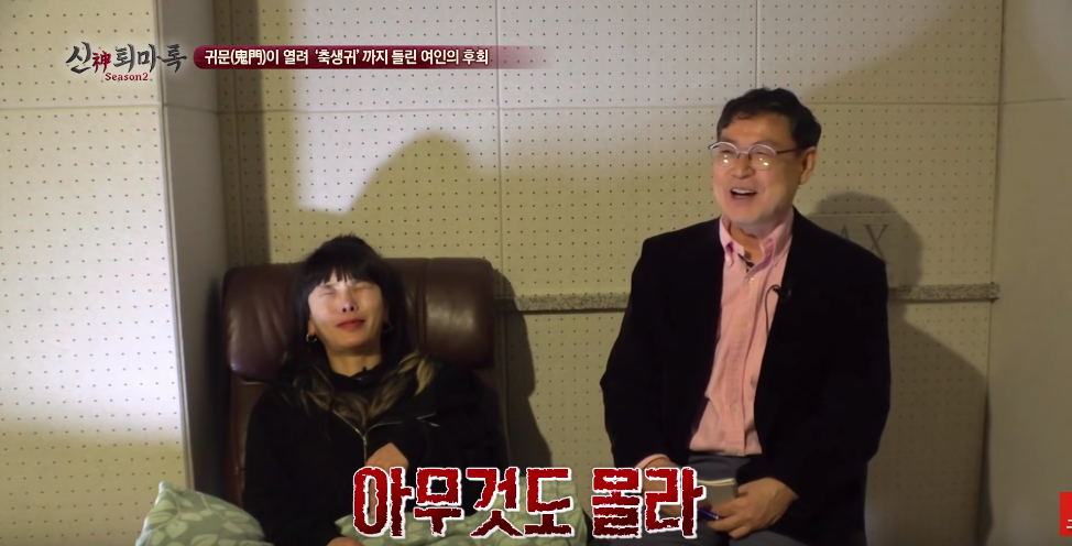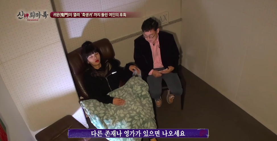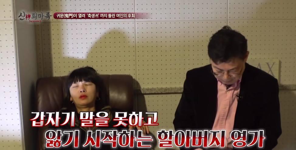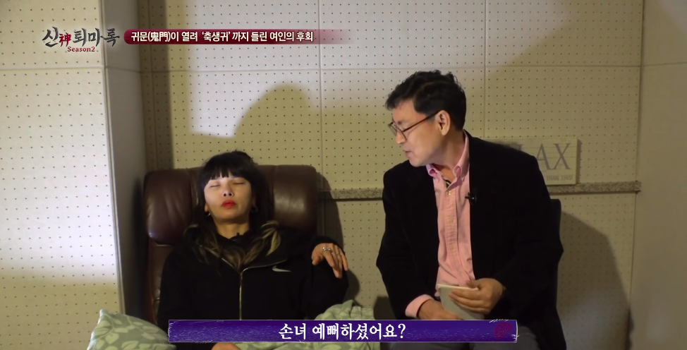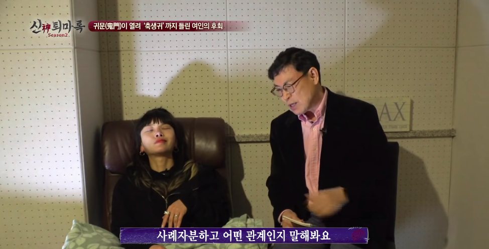 무당이 굿 하기전에 최면을 해서 사례자 몸에 누가 있는지 확인해보는 작업을 하시는 분