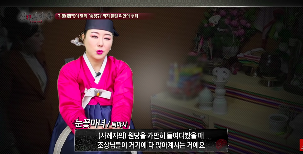 -> 그래서 눈꽃마녀님께서 사례자 방에 있는 신당을 보면서 할머니가 이쪽 저쪽에 계시냐고 말한거임