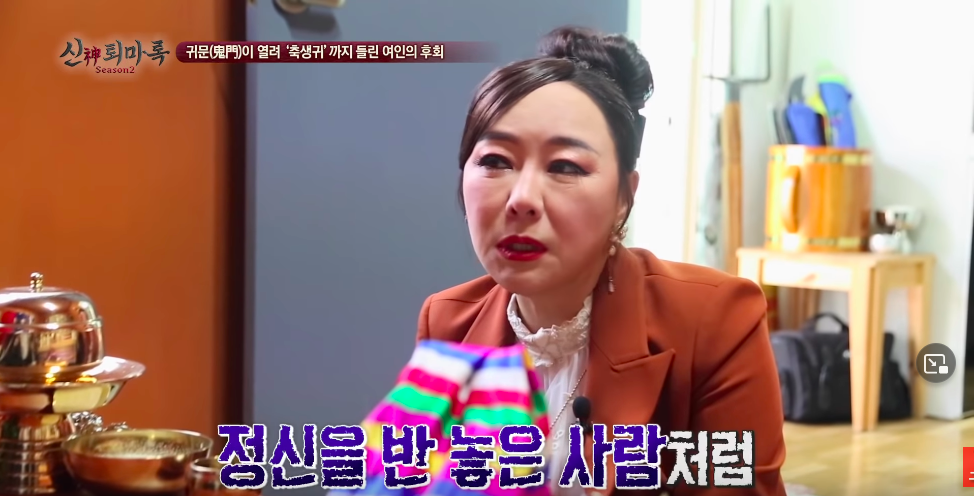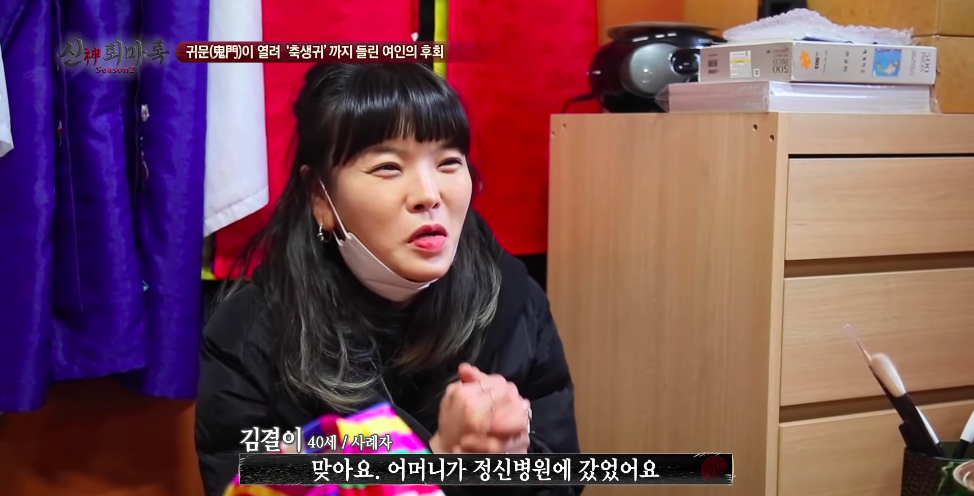 사례자의 어머니는 원래 무당이 될 팔자였고 신을 받지 않았기 때문에 미쳐버리셔서 정신병원에 가신거임