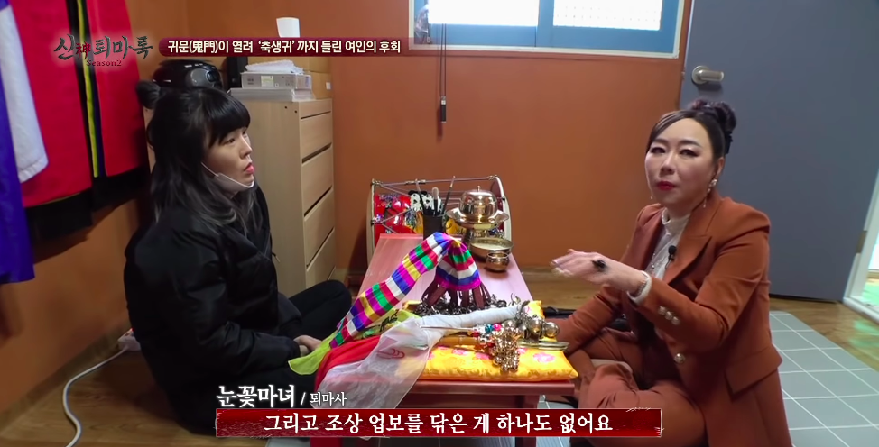 문제는 이 무당이 될 팔자라는게 엄마가 받지 않으면 딸이 받게 되는 시스템임ㅡㅡ