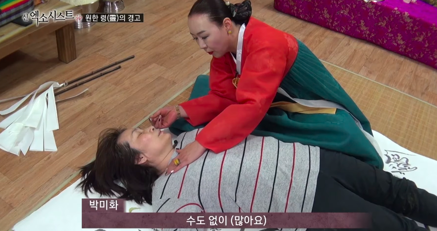 사례자님께서 몸을 엄청 진저리 치시면서 고통스러워하셔