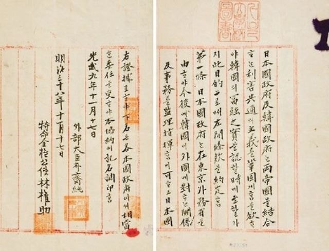 (내용은 대한제국이 일본의 허락없이는 다른 나라와 외교를 맺을 수 없다는 것 ㅋ.. 대한제국을 외교적으록 고립시키려는 수작이었음)