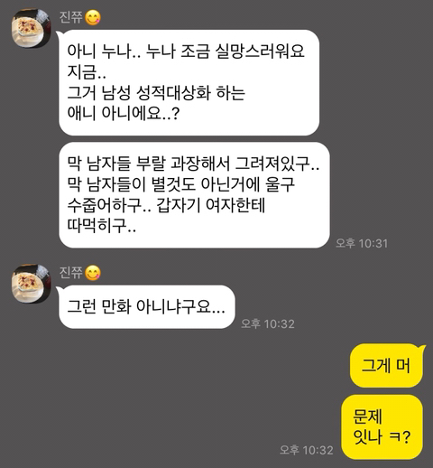 [유머]일본 야한 애니 보다가 딱걸린 여자와 징징대는 연하 남친 작성자독살|작성시간23.04.12|조회수2,545 목록 댓글 2 글자크기 작게가 글자크기 크게가 원문 출처 쭉빵 ’검풍도사‘문제 시 삭제할게요 다음검색 현재 게시글 추가 기능 열기 북마크 공유하기 신고 센터로 신고 댓글 댓글 2 댓글쓰기 답글쓰기 댓글 리스트 작성자파인트 | 작성시간 23.04.12 진짜가 작성자차소월의 개 | 작성시간 23.04.12 대답 댓글 전체보기