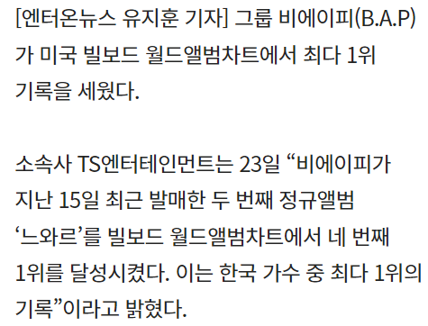 2012년 1월 TS엔터테인먼트에서 데뷔한 보이그룹임 중소의 기적..이라기 보다는 기적이 될 뻔한 그룹이지만 개인적으로 애정이 있어서 가져와봄 돌판에서 흔치않은 파워메보 + 비주얼메보가 있는 그룹임 3세대가 막 자리잡기 시작하던 시기에 선두를 달리던 그룹이었음 또한 빌보드 차트에도 오르고 싸이와 함께 주목받는 가수로 언급되었기도함(지금의 케이팝 명성과 비교X) 하지만 소속사가 레전드 ㅈ소였음을.. 한국 연에계 역사상 최초로 소속가수 모두에게 고소당한 소속사가 바로 비에이피 소속사임 아쉬운 부분이 많은 그룹이지만 실력 하나는 역대급이지 않았나 생각함