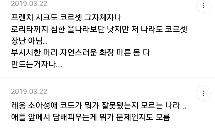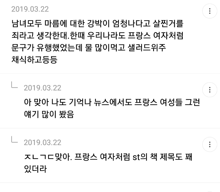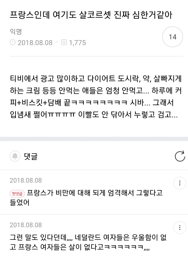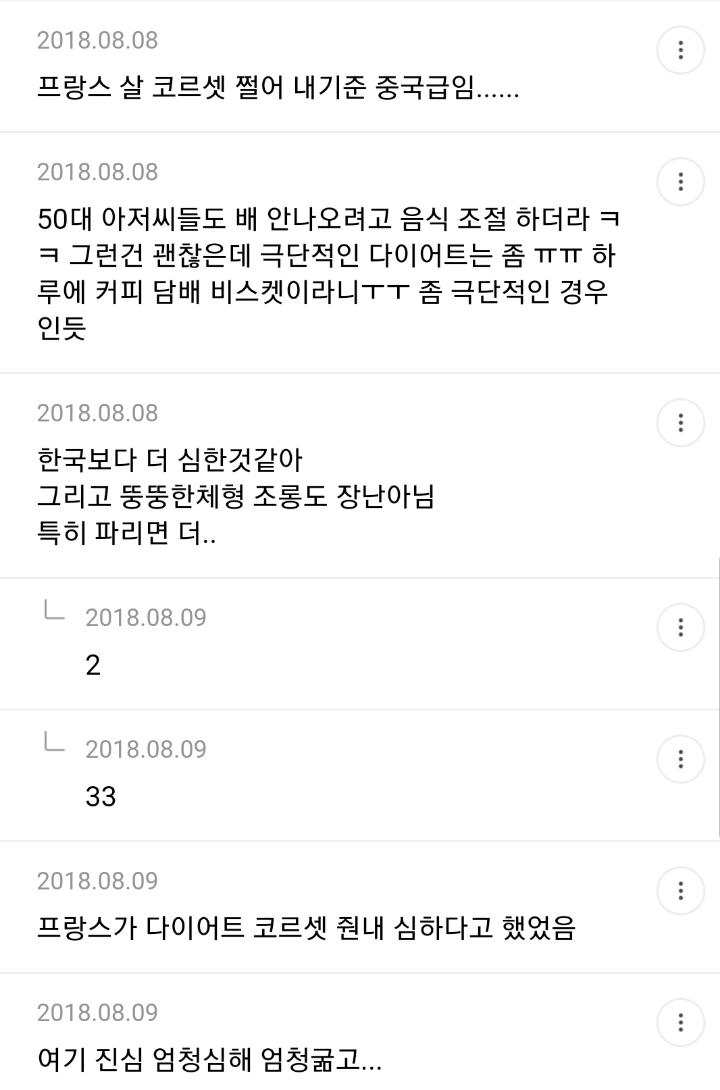 대표적으로 프랑스인데 일단 외모 코르셋 (특히 마름강박) 개심함...