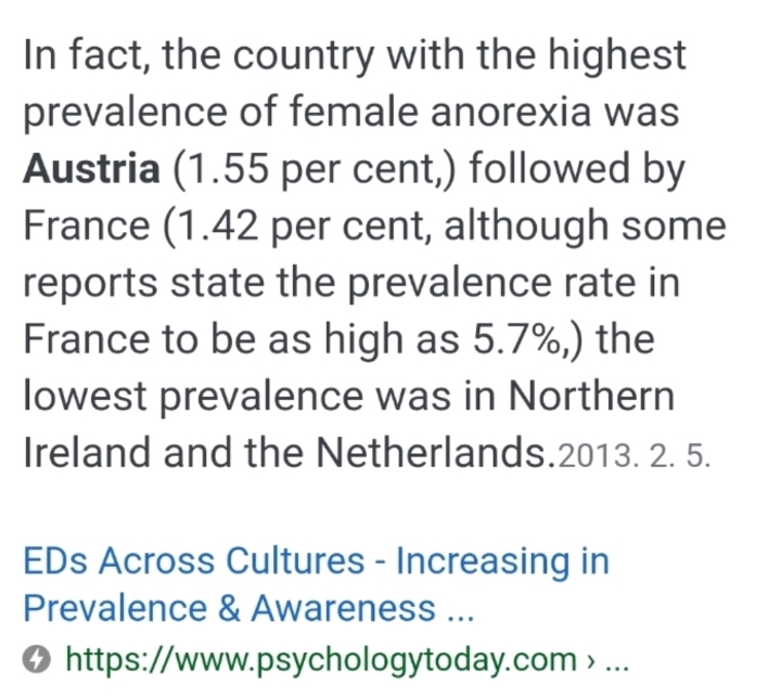 프랑스는 오스트리아 다음으로 거식증이 심한 나라임.