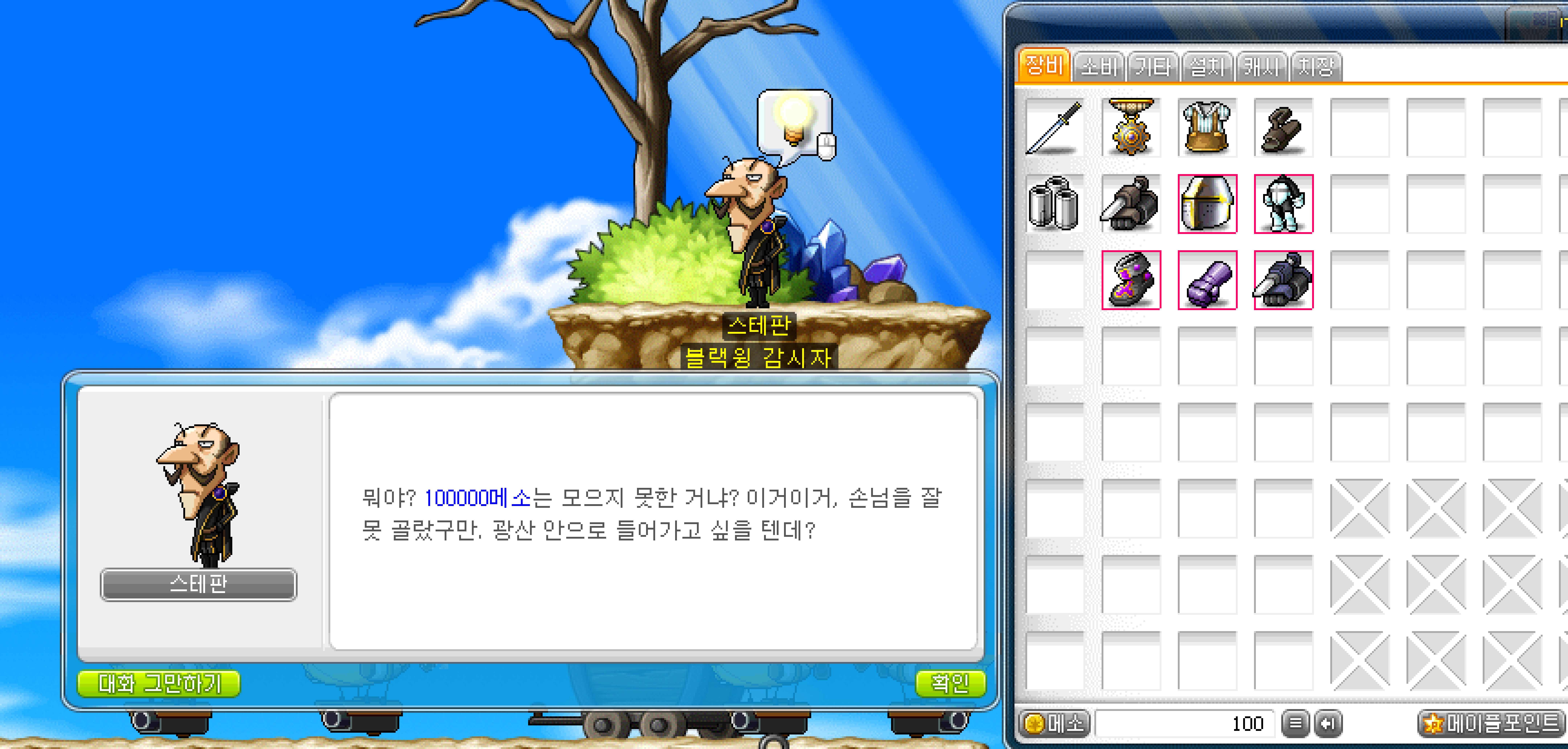 (나는 타섭에 키운 캐릭이라 전재산이 100메소)