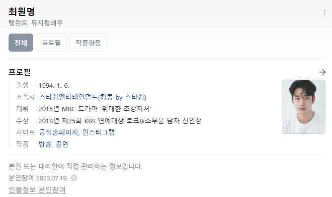 오 스타쉽 소속 최원명이라는 배우였잔아
