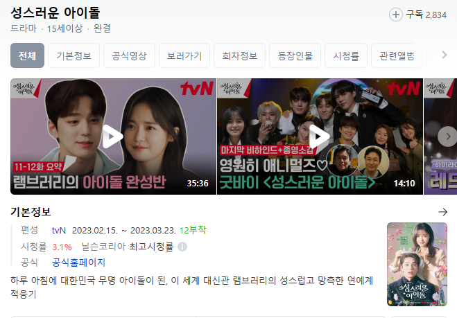 이 눈아는 올해 2월에 티비엔 드라마 찍고 그 후에 새 작품 소식은 딱히 없는 것 같잔아