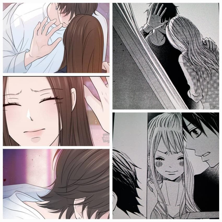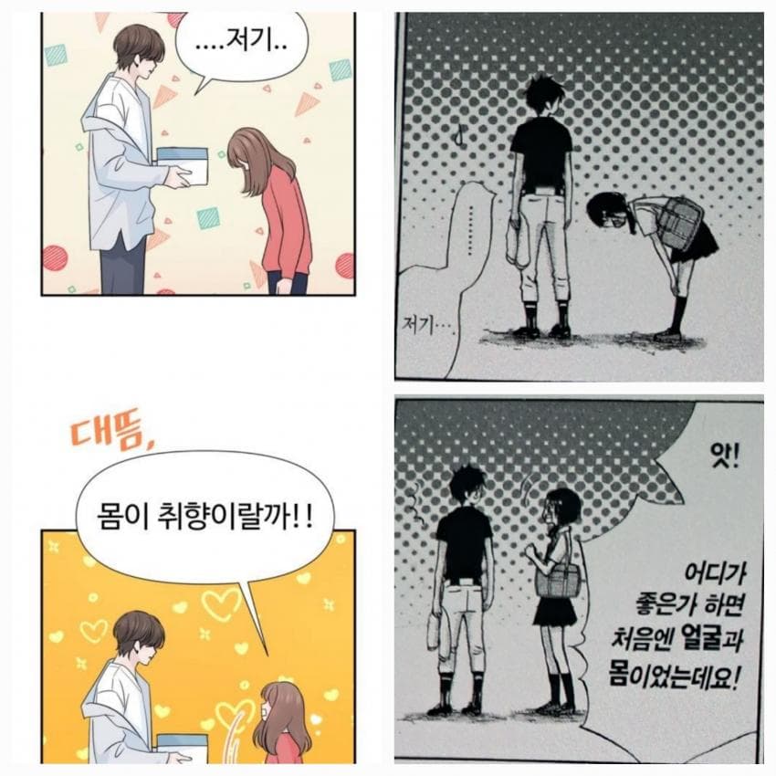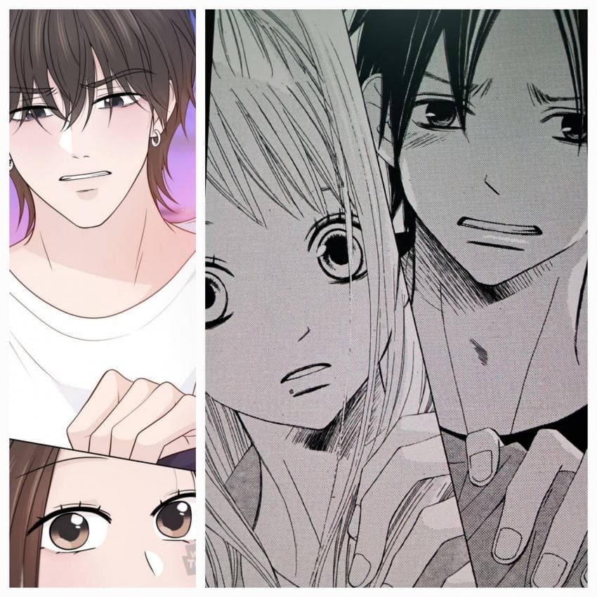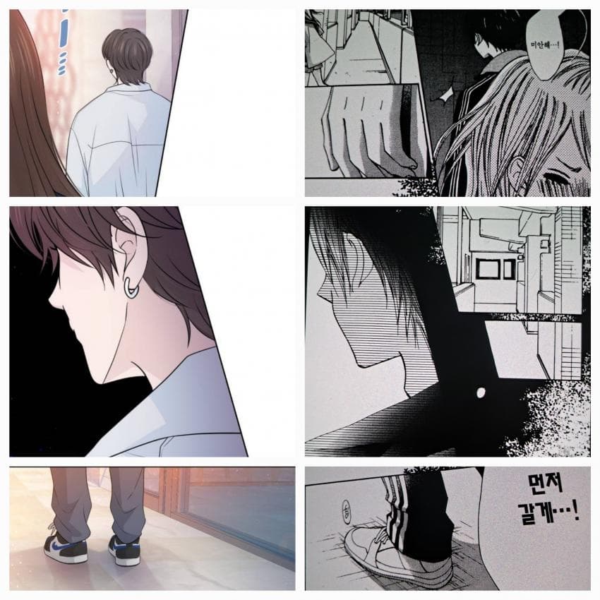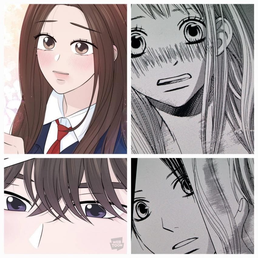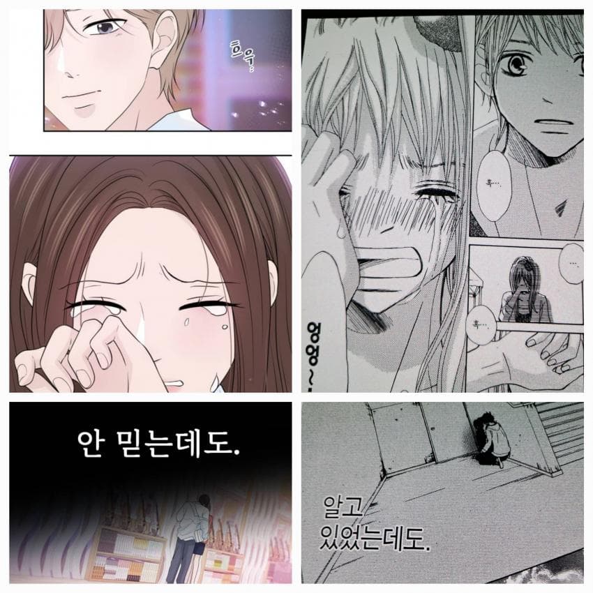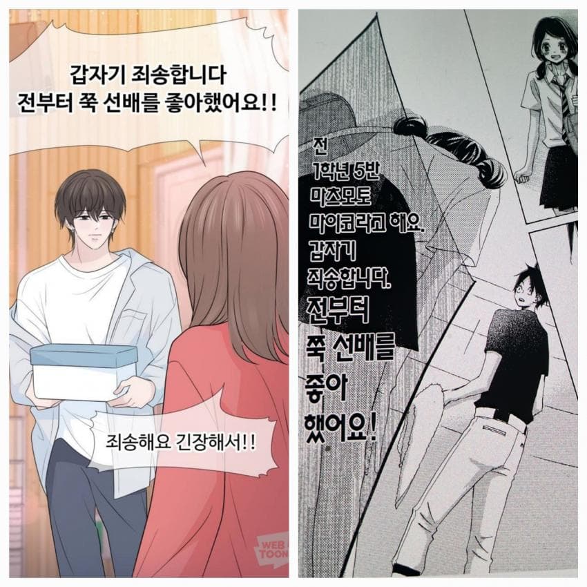 왼쪽이 웹툰 <고백 취소도 되나?> (신매, 2022~2023) / 오른쪽이 일본 만화 <네 곁의 나> (난바 아츠코, 2009~2012)