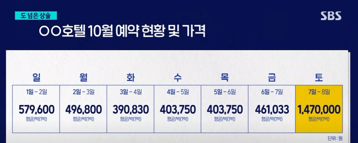 1박에 39~57만원이었던 요금이 147만원이 되는 마법
