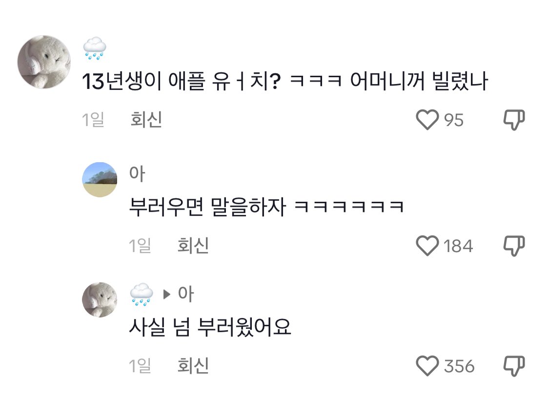 [유머]13년생이 애플워치?ㅋㅋㅋ 어머니꺼 빌렸나 작성자혈당|작성시간23.10.12|조회수34,254 목록 댓글 37 글자크기 작게가 글자크기 크게가 다음검색 현재 게시글 추가 기능 열기 북마크 공유하기 신고 센터로 신고 댓글 댓글 37 댓글쓰기 답글쓰기 댓글 리스트 작성자인생이 | 작성시간 23.10.12 사실 넘 부러웠어요 작성자우유곽 | 작성시간 23.10.12 사실 넘 부러웠어요 작성자물비 | 작성시간 23.10.18 사실 넘 부러웠어요 작성자율등 | 작성시간 23.10.19 사실 넘 부러웠어요 작성자나는야베개대장 | 작성시간 23.10.19 사실 넘 부러웠어요 댓글 전체보기