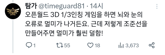 [TMI]포스트잇은 신이며 나에겐 더이상 3D멀미가 없다.twt 작성자암존당보|작성시간23.10.24|조회수33,225 목록 댓글 6 글자크기 작게가 글자크기 크게가 https://twitter.com/timeguard81/status/1716442615510680057?t=la0Cu6DjWJKaYkcb1JOxuQ&s=19 다음검색 현재 게시글 추가 기능 열기 북마크 공유하기 신고 센터로 신고 댓글 댓글 6 댓글쓰기 답글쓰기 댓글 리스트 작성자솨솨 | 작성시간 23.10.24 헐 나도 3d 멀미 있는데 한번 해봐야지 작성자김리즈 | 작성시간 23.10.24 차멀미도 ㄱㄴ? 작성자휴재 | 작성시간 23.10.24 나도 해봐야지 작성자새초롬 | 작성시간 23.10.24 이걸 딩초때 알앗다면ㅠㅠㅠㅠ 해리포터게임 이렇게햇으면 멀미 안햇겟다 작성자치킨야채카레 | 작성시간 23.10.24 와 대박 마크 할 때 적용해봐야지 댓글 전체보기