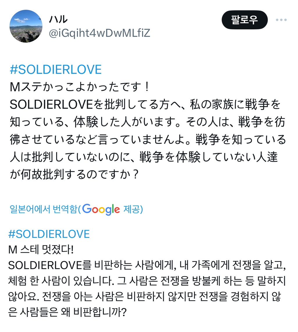 노래 제목 : <SOLDIER LOVE> : 군인의 사랑⚠️
