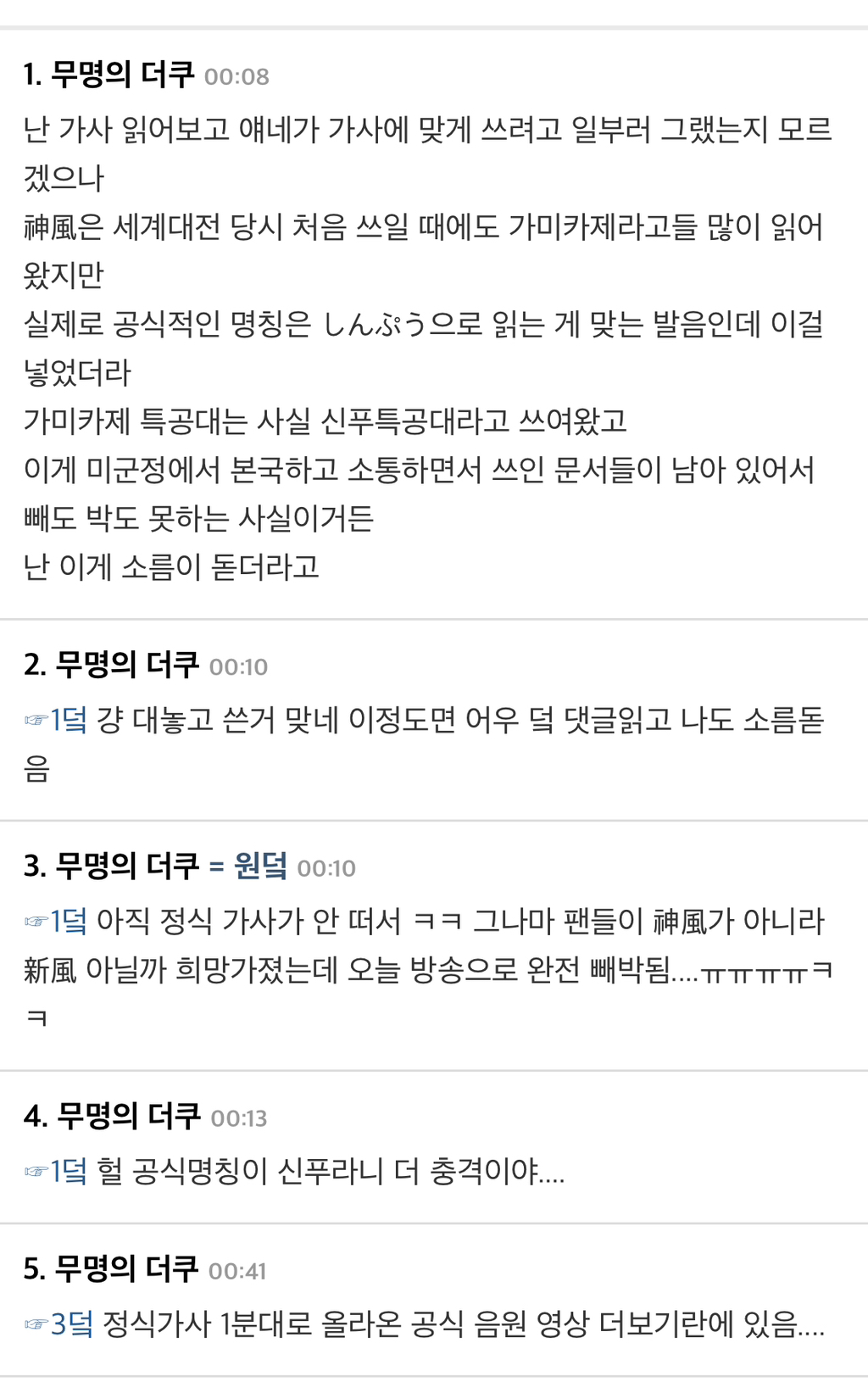 원곡 풀버전 가사엔 카미카제(神風)=신푸가 들어있음;;