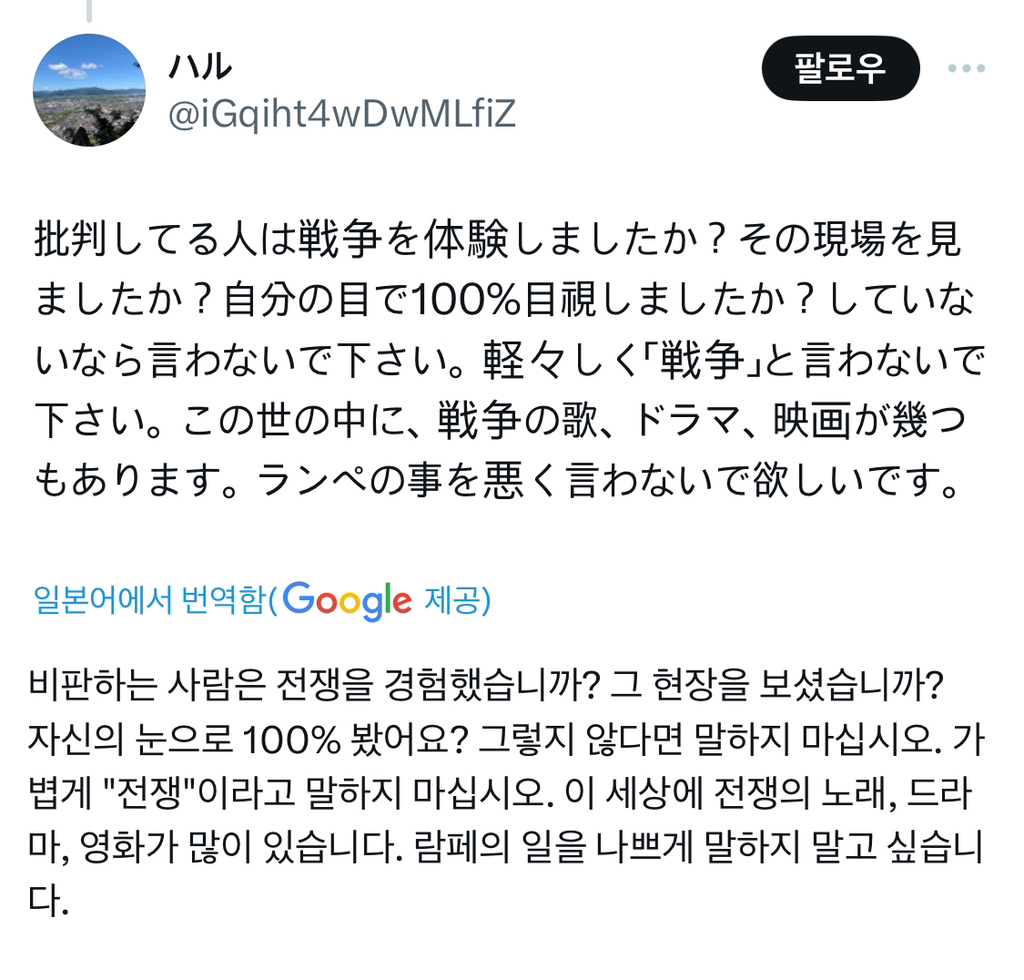 니들이 전쟁으로 희생당해봤냐고 개지랄함...