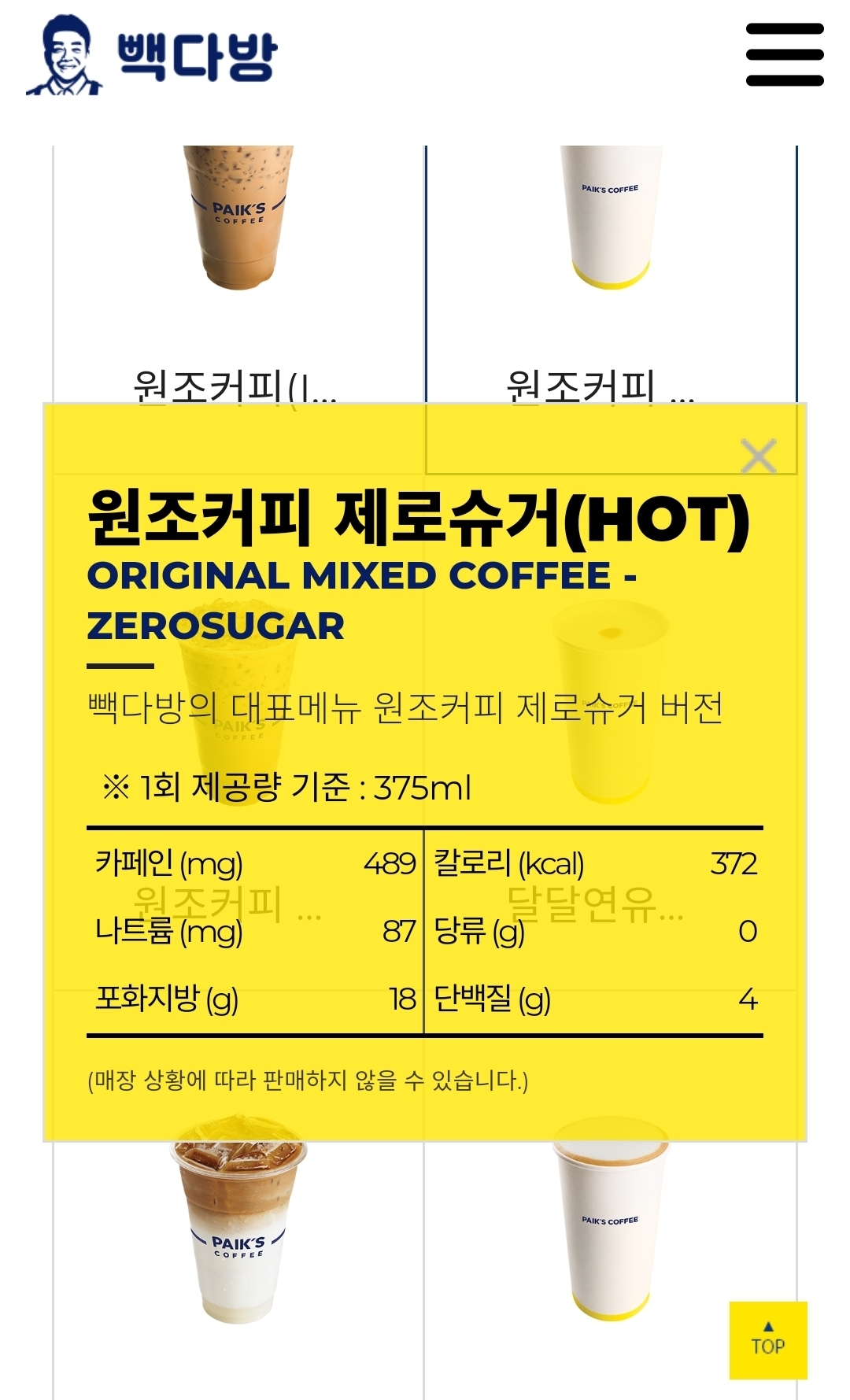 작성시간 23.12.31 원조커피류 커피들은 다 제조되서 나올걸?