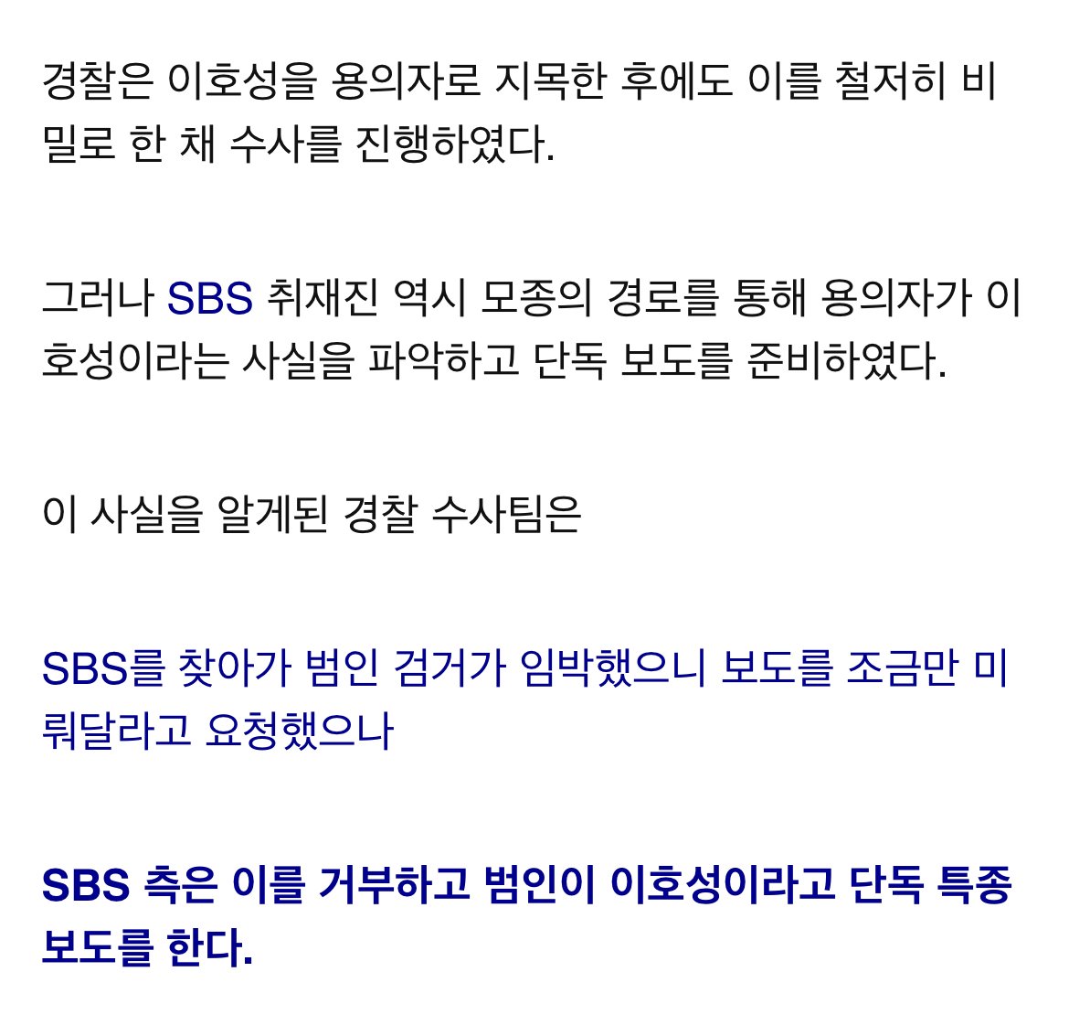 SBS가 수사팀의 부탁에도 엠바고를 깨고 단독 특종 보도를 낸 사실