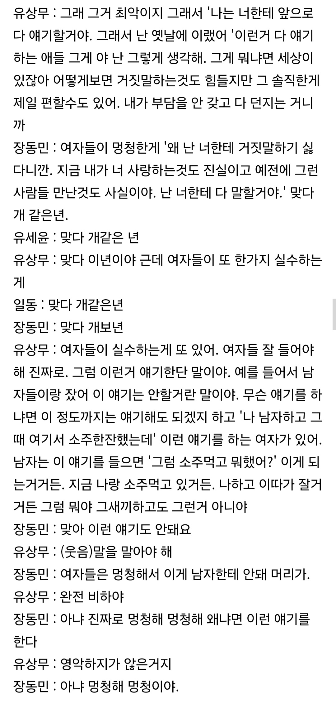 저런 사상을 가진 자가 여자와 같이 방송에 나온다는 사실과 방송사에서 꾸역꾸역 기용하는 사실이 충격적임