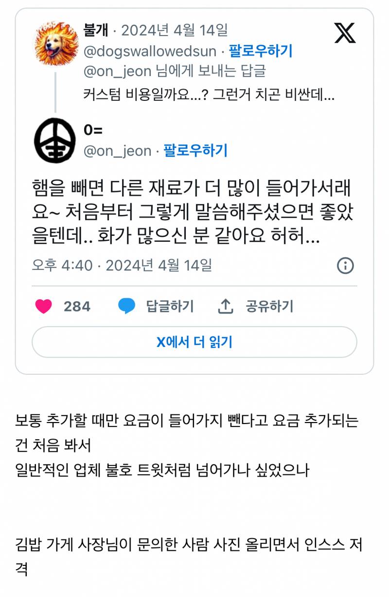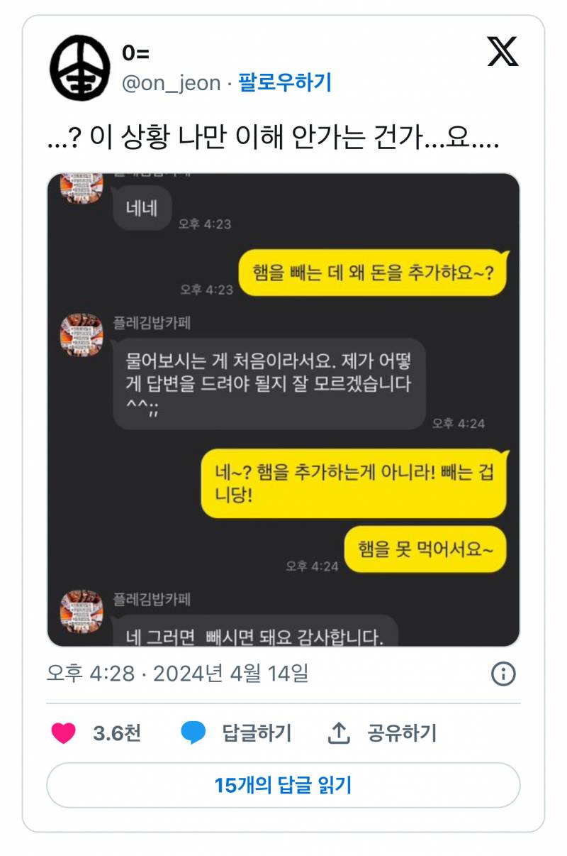 작성자월요일 싫어 작성시간 24.04.15 장사 존나 이상하게 하네 김밥 타이쿤도 그렇게는 안하겠음
