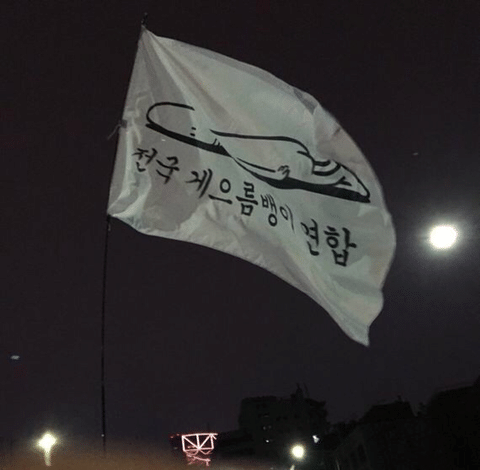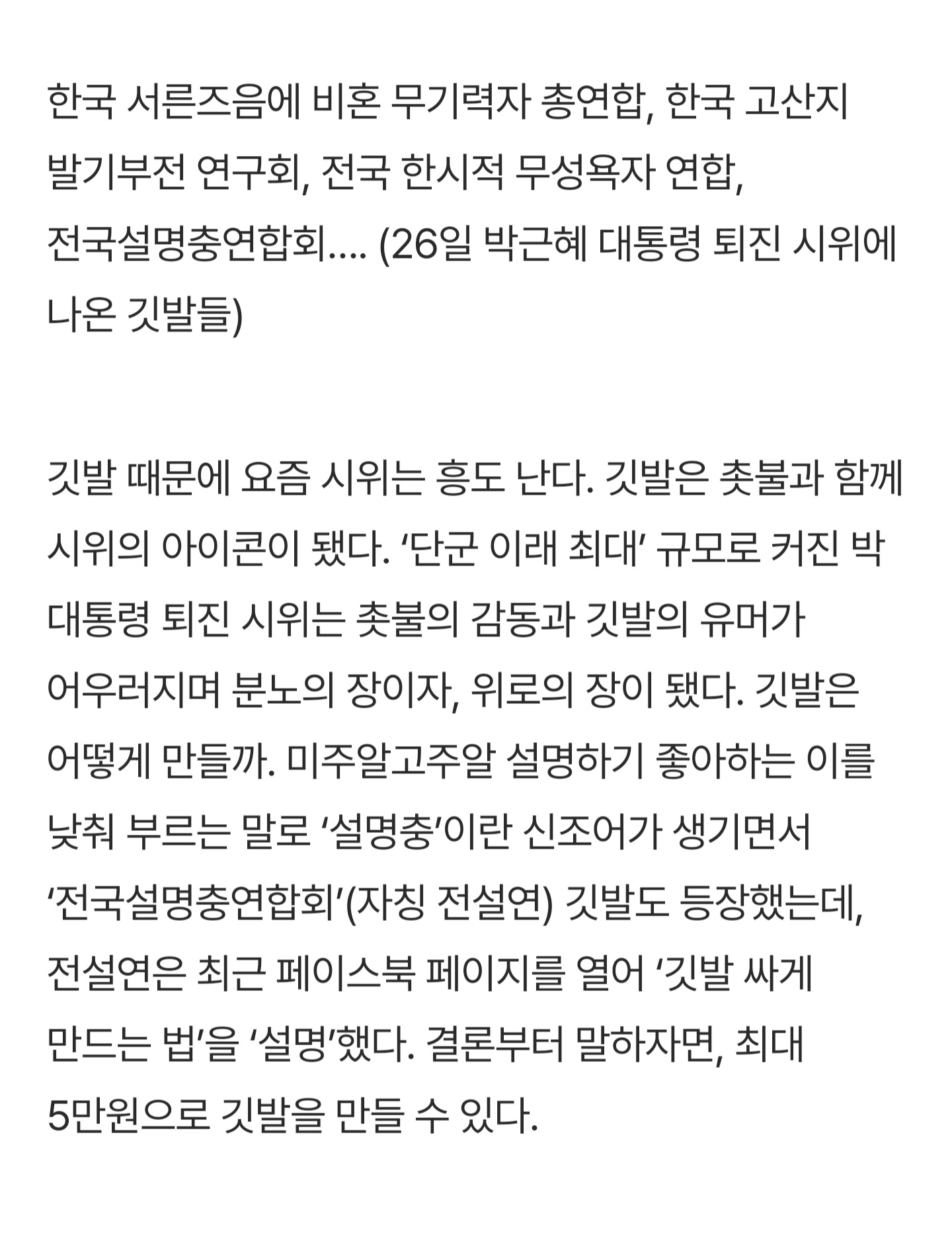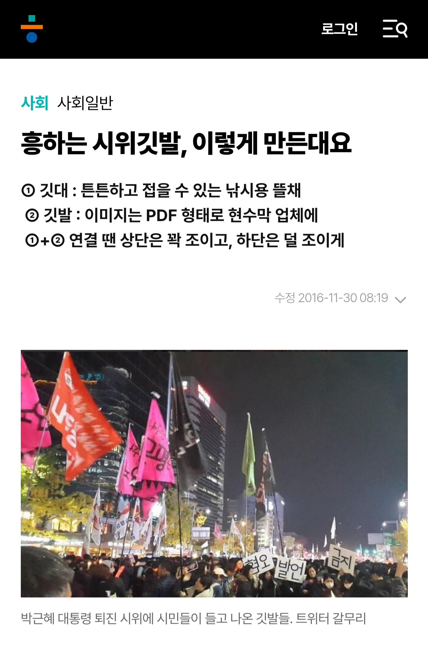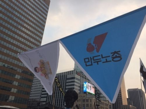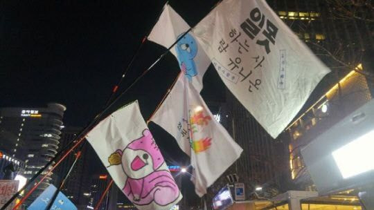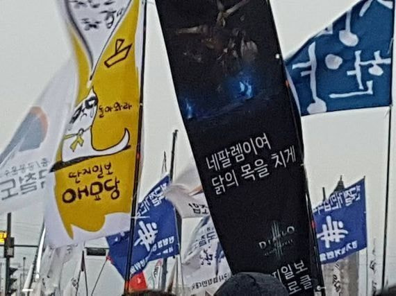이런 기사가 나오게 된 그때 그시절 집회 깃발들