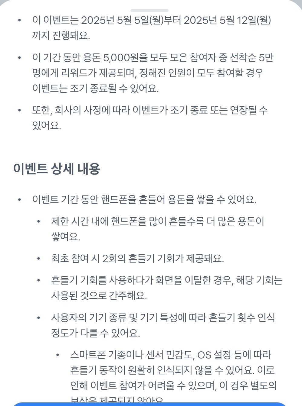 작성자부활 작성시간 25.05.06 어른이날 용돈 5,000원을 선물했어요. 휴대폰을 흔들기만 하면 용돈이 나온대요.