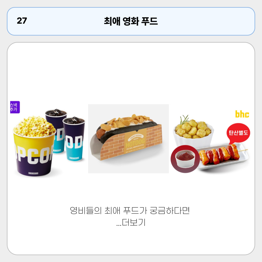 | 씨지비 핫도그 영화볼때 뭐 잘 안 먹는데.. CGV 갈릭핫도그? 메박 팝콘라지 덥카반 갈릭반& 통찡어 메박 더블카라멜팝콘 아메리카노 롯시 뿌링콜팝소떡에 맵스터 소스 추가 메박 더블카라멜팝콘 통찡어 롯시 콜팝소떡 메가박스 더블카라멜팝콘!!!!!!!! 맥날 아아 메가박스 더블카라멜 팝콘 콜라 씨지비 갈릭 스노잉 핫도그, 롯시 콜팝소떡 메박 카라멜팝콘, 공차 버블티 콜 팝 소 떡 콜팝소떡 - 콜팝소떡시네마 맥도날드 감자튀김&콜라, 아니면 밀카 딸기초콜릿&커휘 롯데시네마 콜팝소떡 맵스터 진짜 사랑한다 팝콘 아아도 푸드로 쳐주나요 말해뭐해 롯데시네마 콜팝소떡!! 앤티앤스 아몬드 크림치즈 스틱도 좋아하잔아 기냥 물이 최고~ | 노티드에 커피 먹는거 정말 좋아해요 메박 더블카라멜팝콘🤤 앤티앤스 아몬드 크림치즈 스틱 + 아이스 아메리카노 안먹잔아 (〃⌒▽⌒〃)ゝ 안 먹잔아요.... 팝콘 롯시 콜팝소떡+마운틴듀 조합 좋아합니다,, 존맛ദ്ദിᐢ. .ᐢ₎ 씨지비 핫도그 ㅋ 롯시 소떡콜팝 뿌링클맛에 맵스터소스 추가 디카페인 아메리카노..?.. 영화볼 때 잘 안 먹잔아 아아메 근데 유리방광이라 후반부 갈수록 좀 힘들어요 ㅎ.. CGV 갈릭핫도그 메가박스 캬라멜팝콘 통찡어 롯데시네마 소떡소떡 콜팝 cgv 핫도그... 아이스아메리카노 롯데시네마 콜팝소떡 롯시 소떡콜팝 CGV - 갓 만든 칠리핫도그 커휘한잔할래요 음식을 잘 안먹음 가끔 팝콘... |