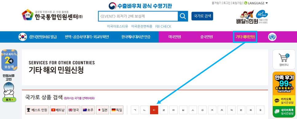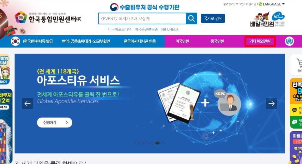 2.'기타 해외민원'을 클릭한다