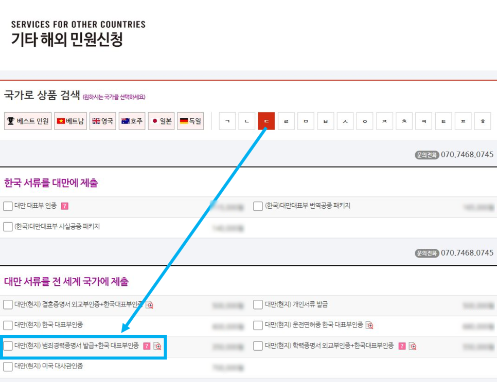 한국통합민원센터를 통한 대만 범죄경력증명서 발급은