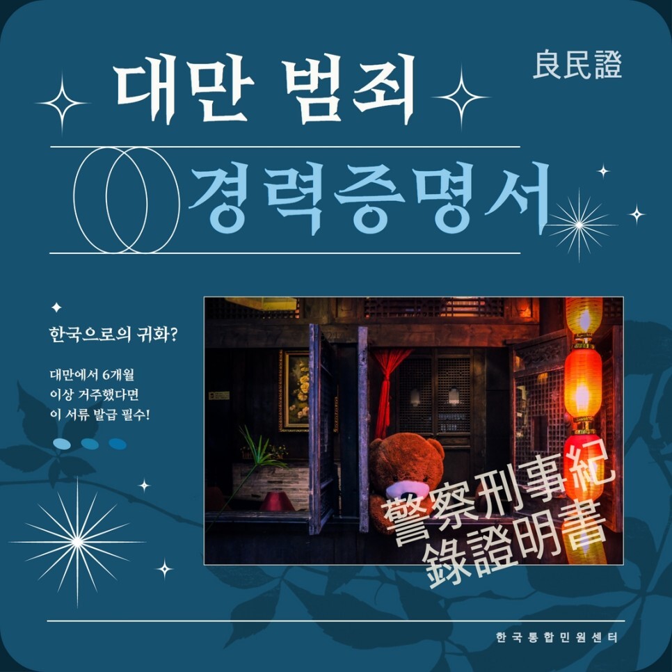 #대만범죄경력증명서 #양민증 #범죄경력회보서 #대만서류