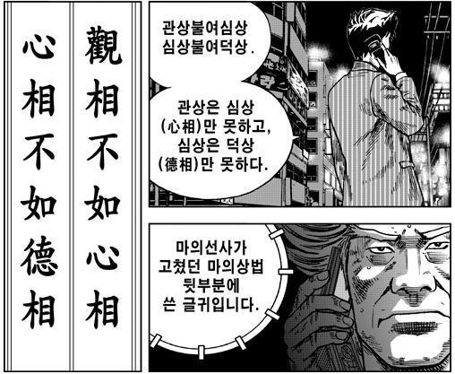 '얼굴 잘생긴 관상(觀相)은 몸이 튼튼한 신상(身相)만 못하고, 몸이 좋은 신상은 마음씨 좋은 심상(心相)만 못하다.'