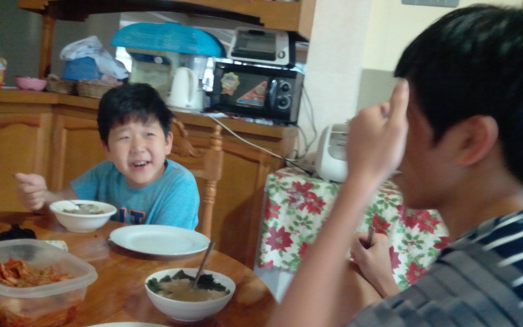 새벽에 일어나 미역국 끓여놓고 승철. 상욱. 빈이 깨워 생파 노래방 부르게하고 미역국 억지로 맛있지! 맛있지! 를 외치는 딸~~^^ 새벽부터 일어난다고. 미역국 끓인다고~~^^ 딸!!! 수고했어~~^^상욱. 승철. 빈이 고마워~~^^ 새벽부터 추카추카해줘서~~^^ 모두들 사랑해~~^^