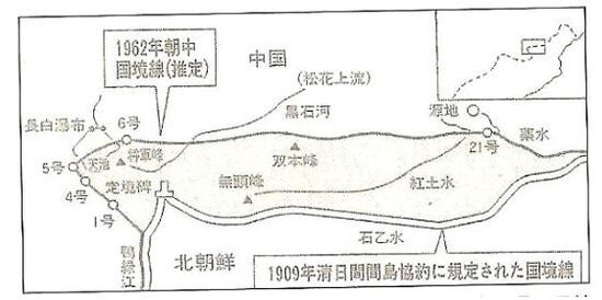 주은래와 김일성이 국경을 정할때 천지와 백두산 열여섯 봉우리를 갈라 55% 는 북한, 45% 는 중국으로