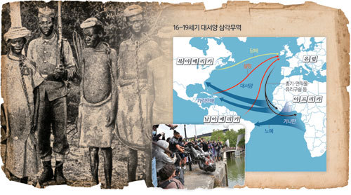1) 노예 무역 : 노예 무역은 삼각형 항로를 이루었으니 유럽의 상선들은 럼주와 의류에 총기