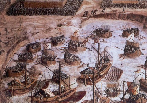 다른 편으로는 베네치아가 주동이 되어 교황청과 제노바 및 신성로마제국과 스페인 함대